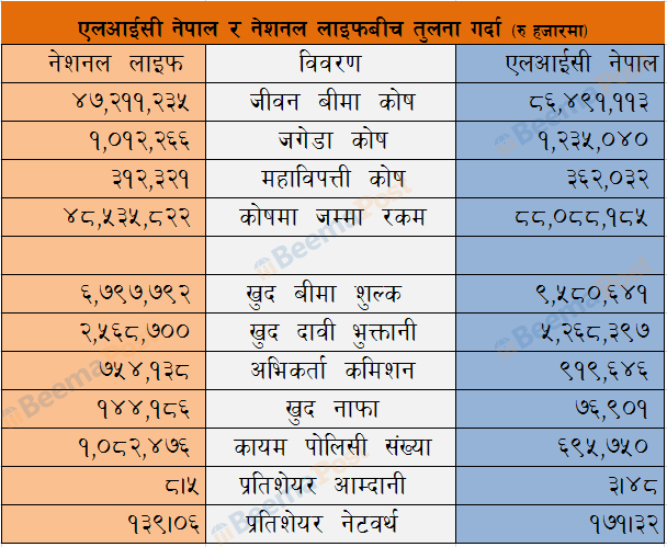 एलआईसी नेपाल र नेशनल लाइफलाई दाँजेर हेर्दा, कसको अवस्था कस्तो ?