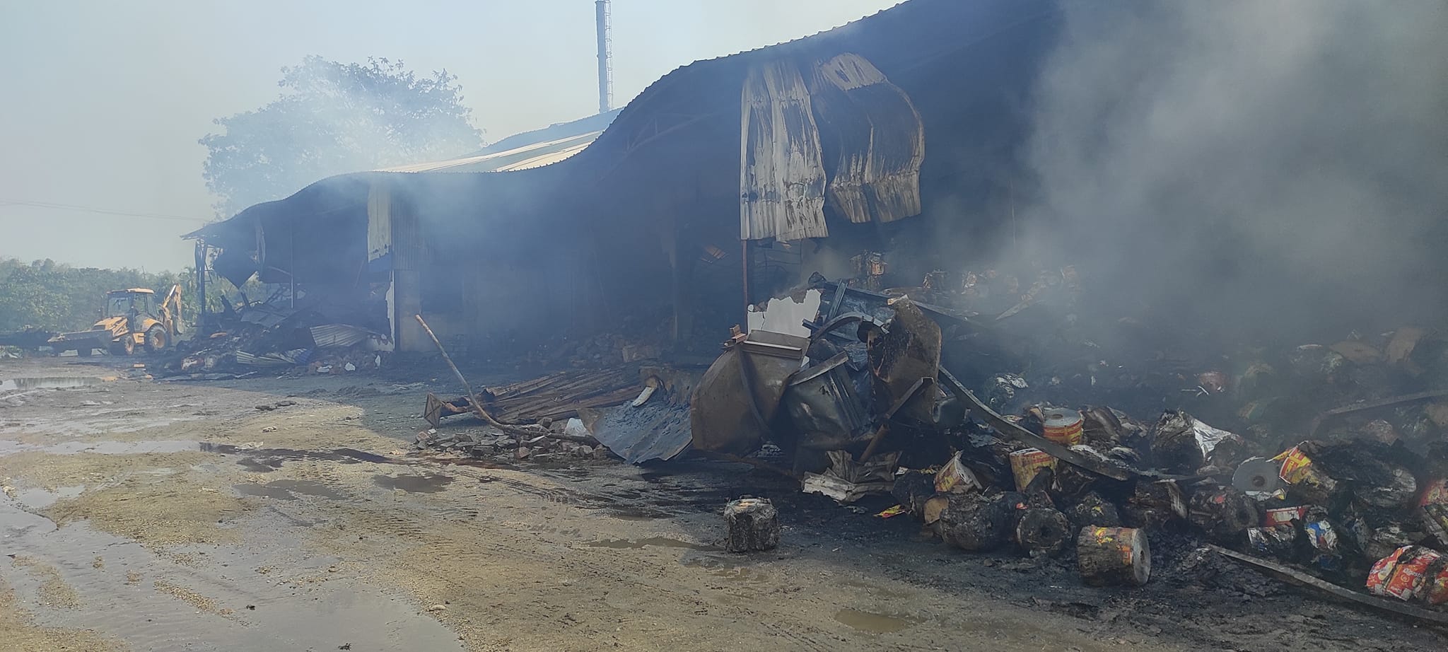 विराटनगर । झापाको मेचीनगर नगरपालिका वडा नम्बर –१४ दुहागढीमा रहेको मनसा थाईफुड्समा आज विहानदेखि भिषण आगोलागी हुँदा सम्पूर्ण उद्योग जलेर नष्ट भएको छ । आज विहान ४ बजेदेखि सुरु भएको आगोलागी लगातार १२ घण्टासम्म जलिरहँदा १३ वटा दमकल प्रयोग हुँदा समेत नियन्त्रणमा लिन कठिन भएको थियो । अत्याधिक मात्रामा भण्डार गरिएको प्लाष्टिक, ठूलो मात्रामा रहेको खुर्सानीका कारण आगोलागी नियन्त्रण चुनौतिपूर्ण बनेको थियो ।