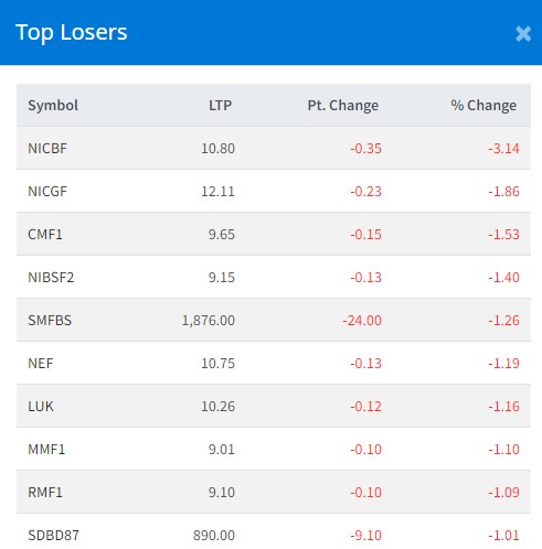 त्यस्तै, एनआइसी एशिया ग्रोथ फण्डको १.८६ प्रतिशत, सिटिजन्स म्युचुअल फण्डको १.५३ प्रतिशत, एनआइबिएल समृद्धि फण्डको १.४० प्रतिशत र स्वाभिमान लघुवित्तको १.२६ प्रतिशतले घटेको हो ।