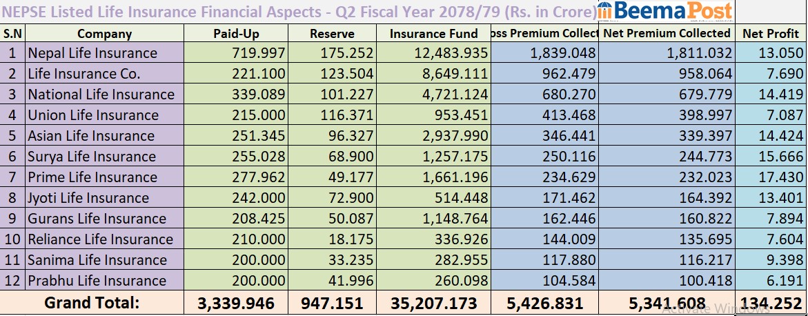 नेप्सेमा सूचीकृत जीवन बीमा कम्पनीले के–केमा प्रगति गरे, कुनको अवस्था कस्तो ?