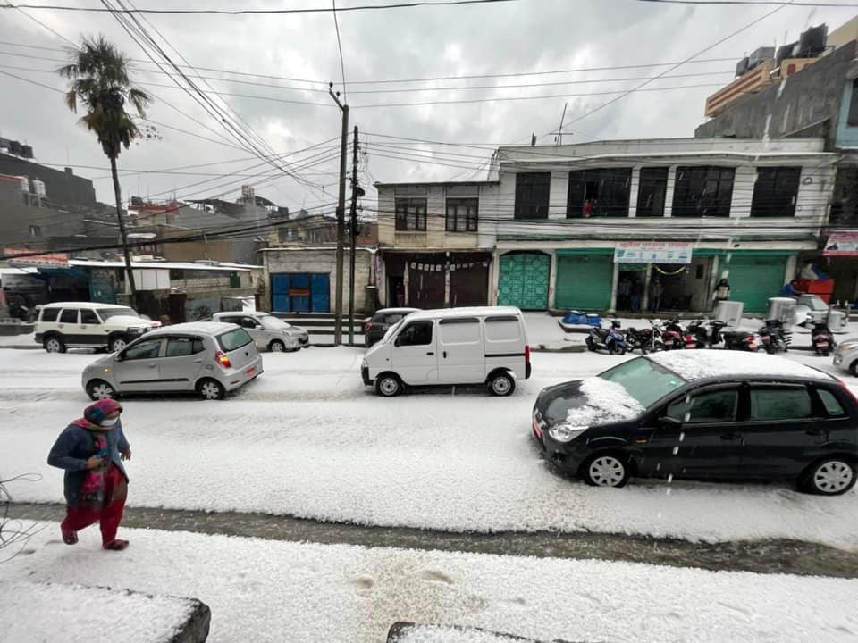 काठमाडौं । गण्डकी प्रदेशको राजधानी पोखरामा आज भिषण असिना वर्षा भएको छ । अत्याधिक मात्रामा परेको असिनापानीका कारण सर्वसधारणहरु घरभित्रै थुनिएका छन् ।