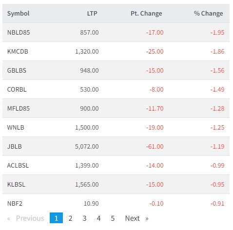 त्यस्तै, कालिका लघुवित्तको १.८६ प्रतिशत, ग्रामिण विकास लघुवित्तको १.५६ प्रतिशत, कर्पोरेट डेभलपमेण्टको १.४९ प्रतिशत, मञ्जु श्री फाइनान्स डिबेञ्चरको १.२८ प्रतिशत र वीन नेपाल लघुवित्तको १.२५ प्रतिशतले घटेको हो ।
