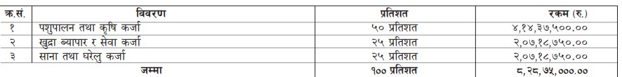 साधारण शेयर निष्कासन गरी प्राप्त हुने पूँजी वित्तीय संस्थाको नियमित लघु वित्तीय कार्यक्रम एवं आर्थिक कारोबारमा लगाइने छ, जसको विवरण देहाय अनुसार रहेको छ ।