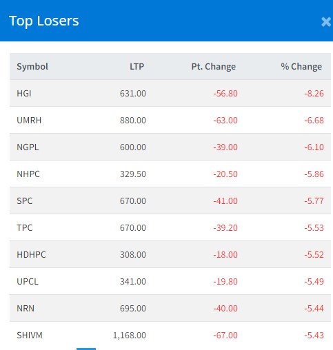 भारि गिरावट आएको शेयरबजारमा आज यी कम्पनीका लगानीकर्ताले सर्वाधिक गुमाए