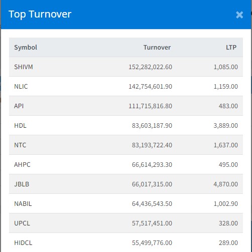 अघिल्लो साताहरुमा ४।५ अर्बमा कारोबार हुने शेयरबजारमा आज २ अर्बमा कारोबार खुम्चिएको छ । सो रकम बराबरको कारोबार हुँदा सर्वाधिक शिवम् सिमेन्टको भएको छ । कम्पनीको शेयर आज खरिदबिक्री गर्न मिल्नेभएसँगै सर्वाधिक १५ करोड २२ लाख ८२ हजार २२ रुपैयाँको कारोबार भएको छ ।