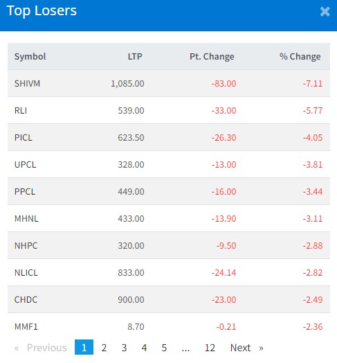 शिवम् सिमेन्ट्स , रिलायन्स लाइफ, प्रुडन्सियल इ्रन्स्योरेन्स, युनिभर्सल पावर, पाँचथर पावर, माउन्टेन इनर्जी, नेशनल हाईड्रोपावर, नेशनल लाइफ, सिईबीडी र मेगा म्युचुअल १ का लगानीकर्ताले सर्वाधिक गुमाएका छन् ।