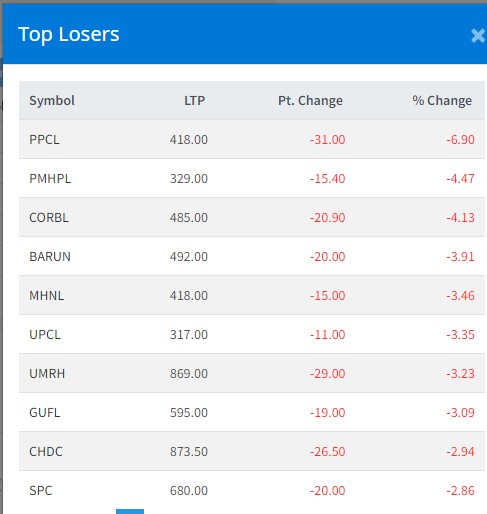 त्यस्तै, पन्चकन्या माई हाइड्रोपावरको ४.४७ प्रतिशत, कर्पोरेट डेभलपमेन्ट बैंकको ४.१३ प्रतिशत, बरुण हाइड्रोपावरको ३.९१ प्रतिशत, माउटेन हाइड्रो नेपालको ३.४६ प्रतिशत, यूनिर्भसनल पावरको ३.३५ प्रतिशत र यूनाइटेड इदि मार्दी आरबि हाइड्रोपावरको ३.२३ प्रतिशतले घटेको हो ।