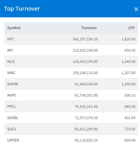 एनटिसिको आज सर्वाधिक ३४ करोड २३ लाख ५७ हजार १९४ रुपैयाँको कारोबार भएको छ ।