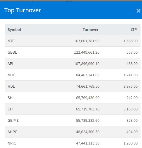 नेपाल टेलिकमसहित यी हुन् आज सर्वाधिक कारोबार हुने टप १० कम्पनी
