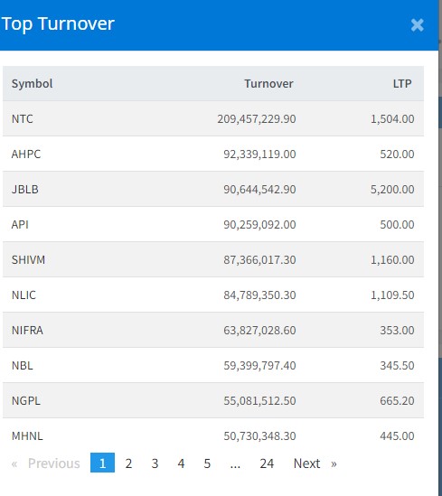 सो रकम बराबरको कारोबार हुदाँ आज सर्वाधिक नेपाल दुरसञ्चार कम्पनीको भएको छ । सो कम्पनीले आज सर्वाधिक २० करोड ९४ लाख ५७ हजार २२९ रुपैयाँ बराबरको कारोबार गरेको छ ।