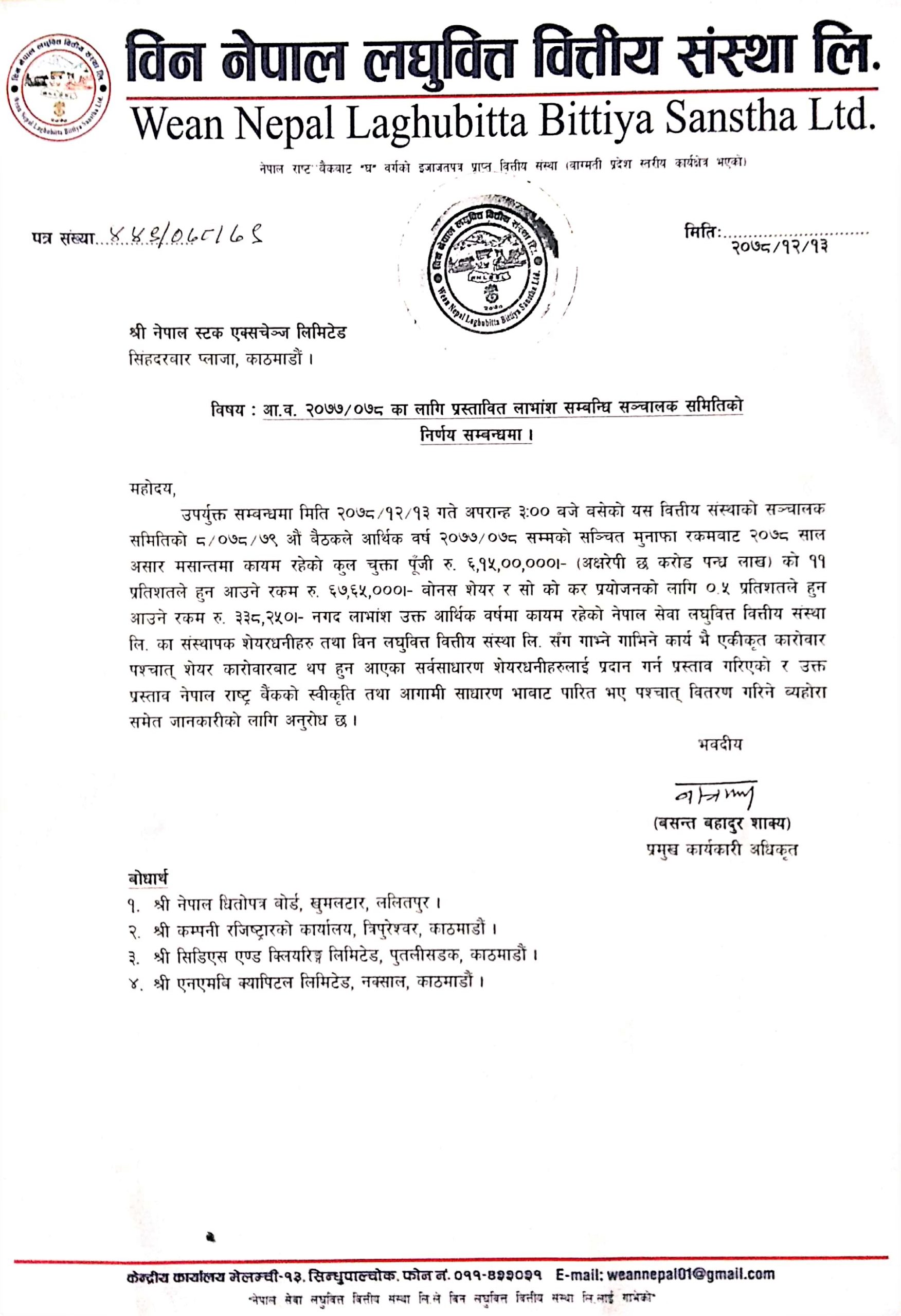 विन नेपाल लघुवित्तद्धारा लाभांश घोषणा, बोनस र नगद कति ?