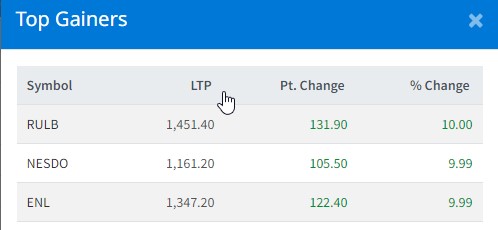 राष्ट्र उत्थान लघुवित्तको शेयर १० प्रतिशतले बृद्धि भएर शेयरमूल्य १४५१ रुपैयाँ ४० पैसा पुगेको छ । त्यस्तै, इमर्जिङ नेपाल र नेष्डो समृद्ध लघुवित्तको शेयर ९।९९ प्रतिशतले बढेर शेयरमूल्य इमर्जिङको १३४७ रुपैयाँ २० रुपैयाँ र नेष्डोको ११६१ रुपैयाँ २० पैसा पुगेको छ ।