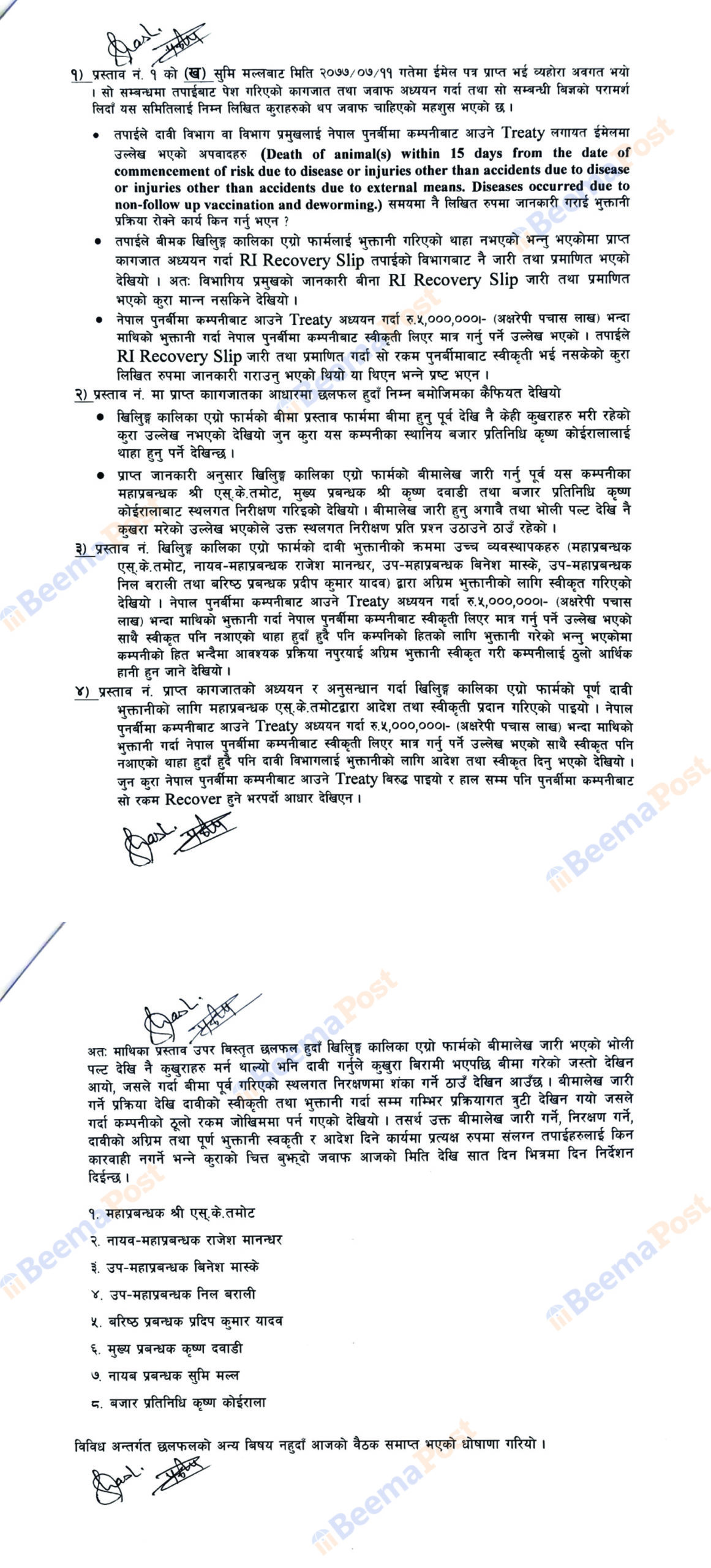 रोचक कुरा के छ भने सो माईन्यूटमा सह–महाप्रबन्धक तथा लेखा प्रमुख निल बराली तथा अर्का कर्मचारी प्रदिप कुमार यादवले हस्ताक्षर गरेका छन् ।