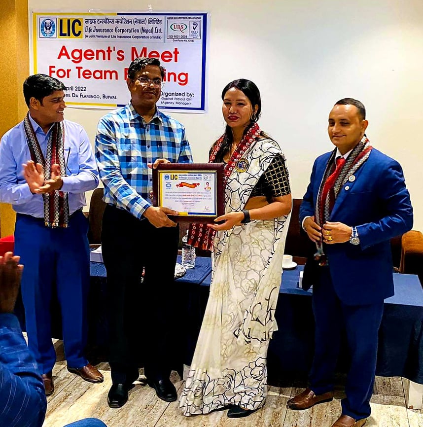 एलआईसी नेपालका सिनियर एजेन्सी म्यानेजर गोबिन्द प्रसाद गिरीले अभिकर्ताहरुलाई तालिम दिँदै आफ्नो पेशामा दृढ भएर संघर्ष गर्न सकेमा सफलता चुम्न धेरै समय नलाग्ने बताए । उनले भने, ‘अभिकर्ता पेशामा केही हुदैन भन्नेहरुले अभिकर्ता पेशाबाटै लोभलाग्दो वैभवशाली जीवन बिताएहरुबाट हामी केही सिक्न सक्छौं,’ प्रशिक्षक गिरीले भने । बीमा अभिकर्ताहरुलाई प्रशिक्षण दिँदै गिरीले भने, ‘बीमा अभिकर्ता पेशामा आवद्ध भएपछि पब्लिक रिलेशन बढ्छ । सामान्य ज्याला मजदुरी गर्नेदेखि लिएर पहुँचवालसम्मका मान्छेहरुसँग चिनजान हुन्छन् । आफुले चाहेका मान्छेहरुलाई सहजै भेट्न पाईन्छ । अभिकर्ता पेशाले समाजमा चिनाउँछ, यो निश्वार्थ भावले गरिने समाजसेवा पनि हो ।’