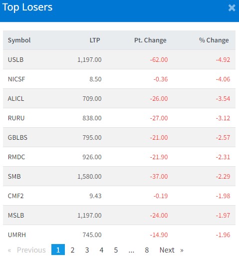 एनआईसी एशिया सेलेक्ट ३०, एशियन लाइफ, रुरु जलविधुत्, ग्रामीण विकास लघुवित्त, आरएमडिसी, स्र्पोट माईक्रोफाइनान्स, सिटिजन म्युचुअल फन्ड २, माहुली लघुवित्त र युनाईटेड इर्दी मर्दीको शेयरमा नरकारात्मक सर्किट लागेको छ।