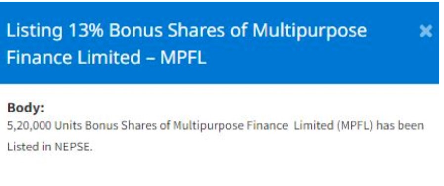 मल्टिपर्पस फाइनान्सको बोनस शेयर सूचिकृत