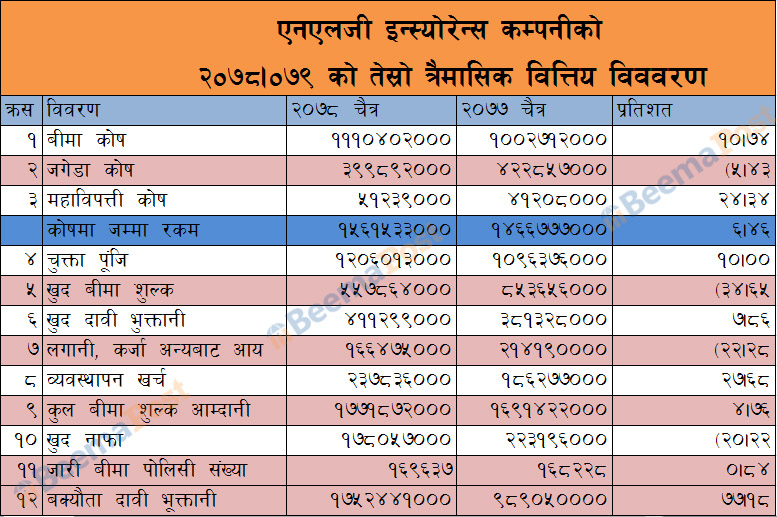 तेस्रो त्रैमासमा एनएलजीको कूल बीमा शुल्क पौने दुई अर्बमाथि, अन्य सूचांक कस्तो ?