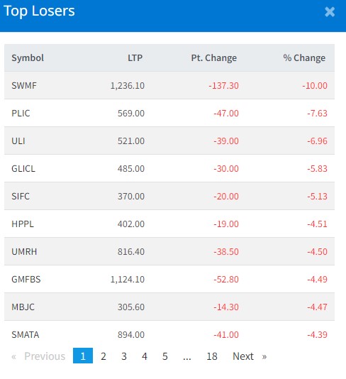 त्यस्तै, प्राइम लाइफ, युनियन लाइफ, गुराँस लाइफ, श्री इन्भेष्टमेन्ट फाइनान्स, हिमालयन पावर र्पाटनर, युनाईटेड ईदी मर्दी, गणपति लघुवित्त, मध्यभोटेकाशी र समता लघुवित्तको शेयरमा ओरालो लागेको छ ।
