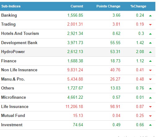 आज हाईड्रोपावर समूहको उपसूचक उचालिएको छ। हाईड्रोपावर समूहको उपसूचक २।०८प्रतिशतले बढेको हो ।