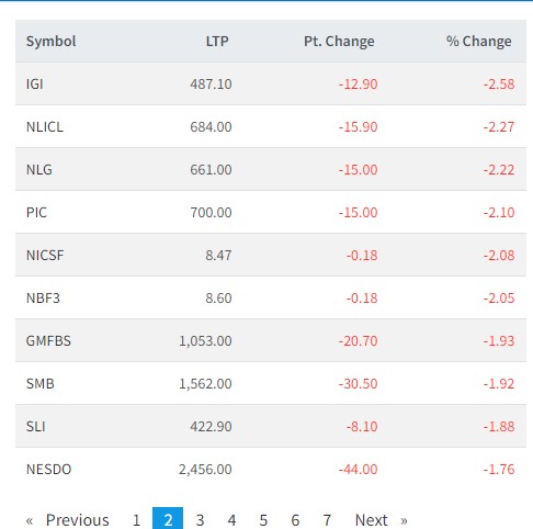 त्यस्तै, प्रुडेन्सियल इन्स्योरेन्स, सूर्या लाइफ, एशियन लाइफ, नेपाल इन्भेष्टमेन्ट डिभेञ्चर २०८२, माहुली लघुवित्त, प्रभु इन्स्यारेन्स, सिटिजन म्युचुअल फन्ड २, मञ्जुश्री फाइनान्स, आईजीआई, नेशनल लाइफ, एनएलजी, प्रिमियर इन्स्योरेन्स र ज्योति लाइफको शेयर घटेको छ ।