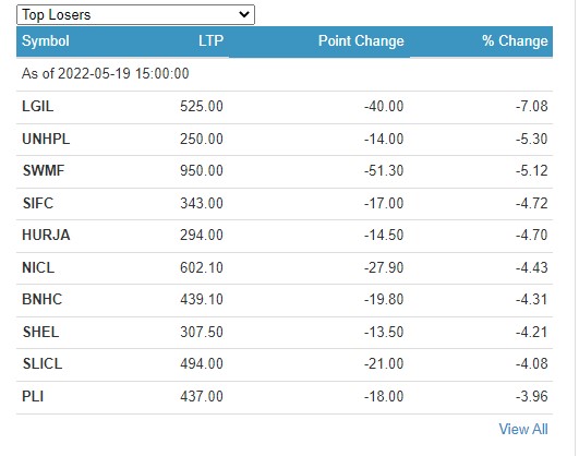 त्यस्तै, यूनियन हाईड्रोपावर, सूर्यादय वोमी लघुवित्त, श्री इन्भेष्टमेन्ट फाइनान्स, हिमालयन उर्जा, नेपाल इन्स्योरेन्स र वुद्धभूमि नेपाल हाईड्रोपावरका लगानीकर्ताले सर्वाधिक गुमाएका छन् ।