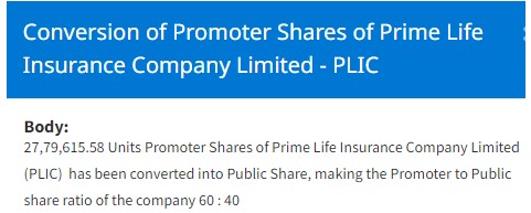 प्राइम लाइफको शेयर संरचना परिवर्तन