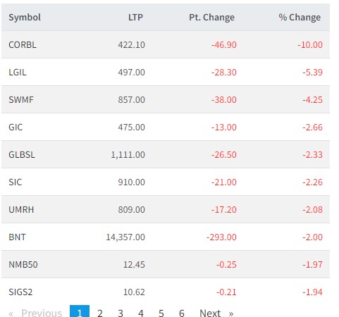 त्यस्तै, लुम्बिनी जनरल इन्स्योरेन्स, सूर्यादय वोमी लघुवित्त, जनरल इन्स्योरेन्स, गुराँस लघुवित्त, सगरमाथा इन्स्योरेन्स, यूनाईटेड इर्दी मर्दी र बोर्टलर्स नेपाल (तराई)का लगानीकर्ताले सर्वाधिक गुमाएक छन् ।