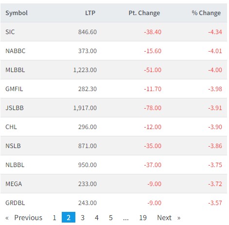 त्यस्तै, एनएलजी इन्स्योरेन्स, कर्पोरेट डेभलपमेन्ट बैंक,मल्टिपप्रोज फानाइनान्स, प्रभु इन्स्योरेन्स, मैलुङ खोला, नेपाल इन्स्योरेन्स कम्पनी, लुम्बिनी जनरल, समृद्धि फाइनान्स, सगरमाथा इन्स्योरेन्स र एनआईसी एशिया लघुवित्तको शेयर मूल्य घटेको छ।