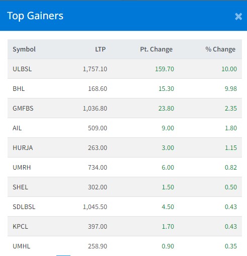 त्यस्तै, बलेफी हाइड्रोपावरको पनि ९.९८ प्रतिशतले बढेर सर्किट लेभलमा कारोबार भएको छ । साथै गणपति लघुवित्तको २.३५ प्रतिशत, अजोड इन्स्योरेन्सको १.८० प्रतिशत र हिमालयन उर्जा विकास कम्पनीको १.१५ प्रतिशतले शेयरमूल्य बढ्न पुगेको छ ।