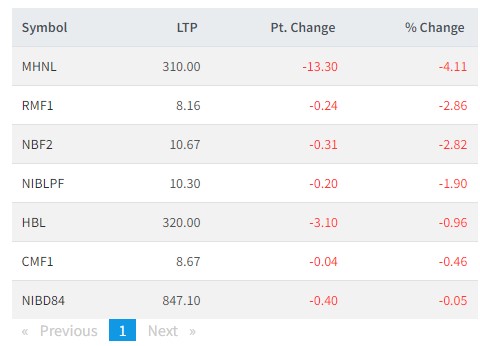 त्यस्तै, आरबिबि म्युचुअल फण्ड १ को ,नबिल ब्यालेचड फण्ड , एनआईबिएल प्रगति फण्डको र हिमालयन बैंकको शेयर सर्वाधिक घटेको छ।