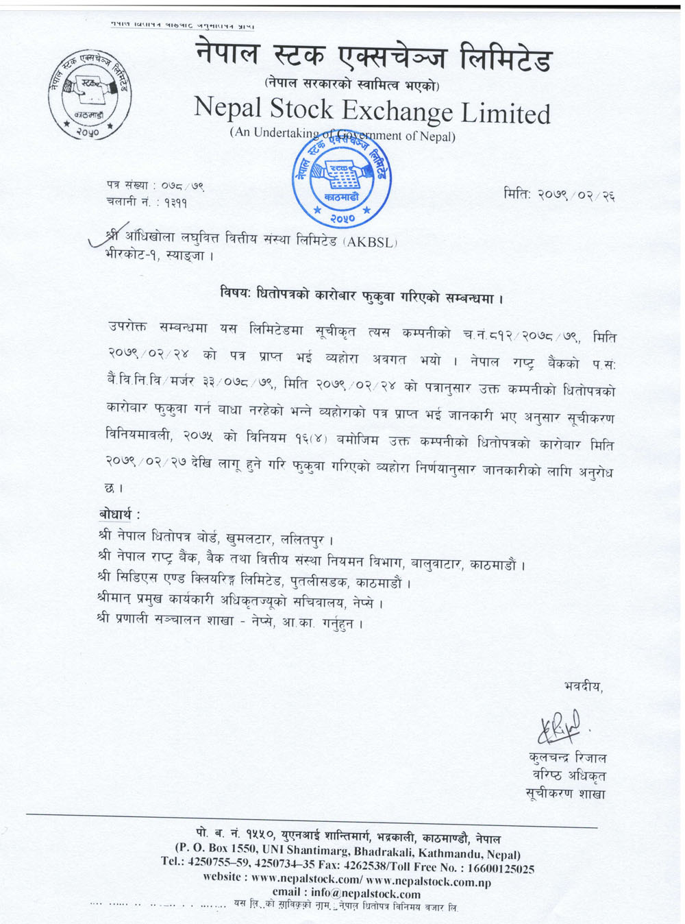 अढाई वर्षपछि आँधिखोला लघुवित्तको शेयर कारोबार फुकुवा