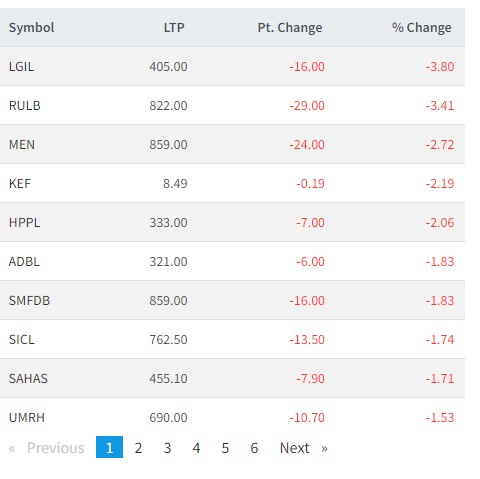 त्यस्तै, राष्ट्र उत्थान, माउन्टेन इनर्जी, कुमारी इक्विटी फन्ड, हिमालयन पावर पार्टनर र कृषि विकास बैंकको शेयर सबैभन्दा धेरै घटेको छ ।