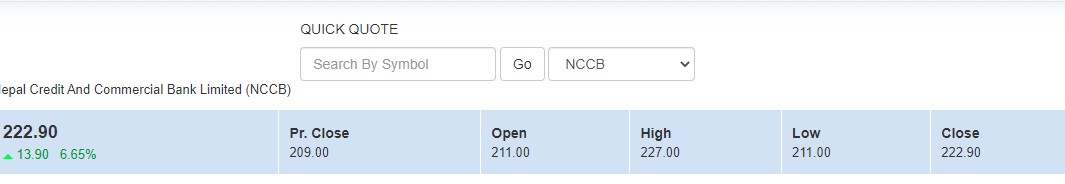 बैंकको एकैदिन ४ लाख ६९ हजार ९८३ कित्ता सेयर १० करोड ३५ लाख रुपैयाँमा किनबेच भएको छ ।आज बैंकको सेयर मूल्य प्रतिकित्ता १४ रुपैयाँले बढेर २२२ रुपैयाँमा कारोबार बन्द भएको छ ।