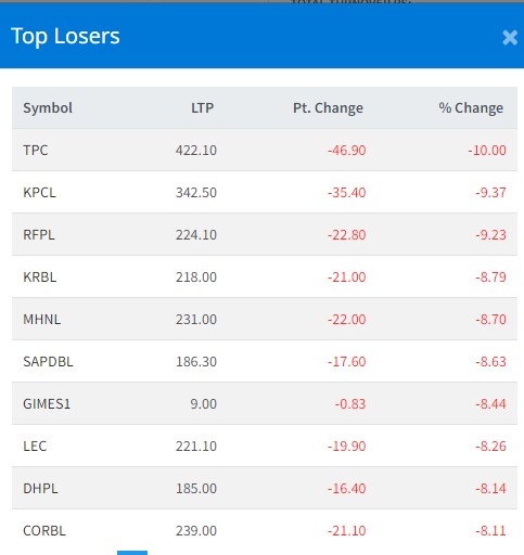 त्यस्तै, कालिका पावरको ९.३७ प्रतिशत, रिभर फल्सको ९.२३ प्रतिशत, कर्णाली डेभलपमेन्ट बैंकको ८.७९ प्रतिशत र माउन्टेन हाइड्रो नेपालको ८.७० प्रतिशत अंकले घट्न पुगेको छ ।