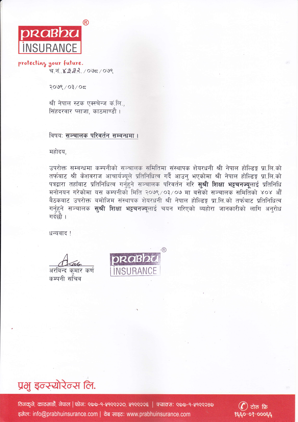 प्रभु इन्स्योरेन्सको संचालक परिवर्तन