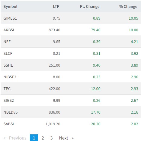 त्यस्तै, सानिमा लार्ज क्याप, शिव श्री हाईड्रोपावर, एनआईबिएल समृद्धि फण्ड, तेह्रथुम पावर, सिद्धार्थ स्किम फण्ड, नबिल डिभेञ्चर २०८५ र सबैको लघुवित्तका लगानीकर्ताले आज सर्वाधिक कमाएका छन् ।
