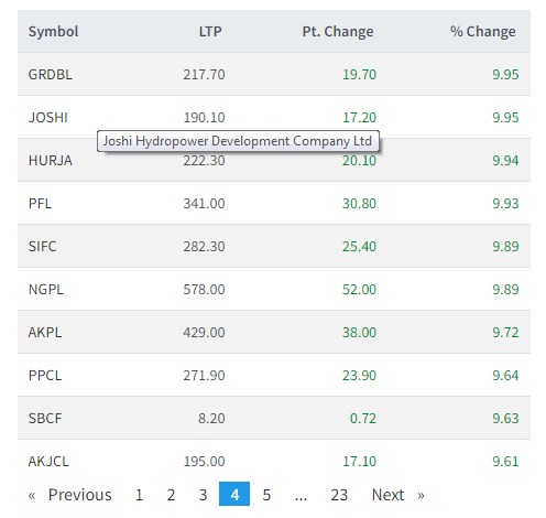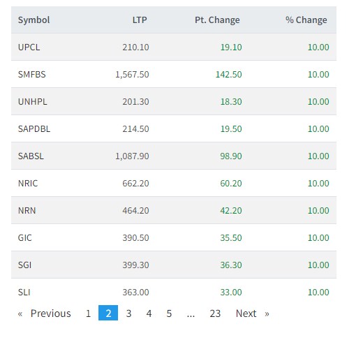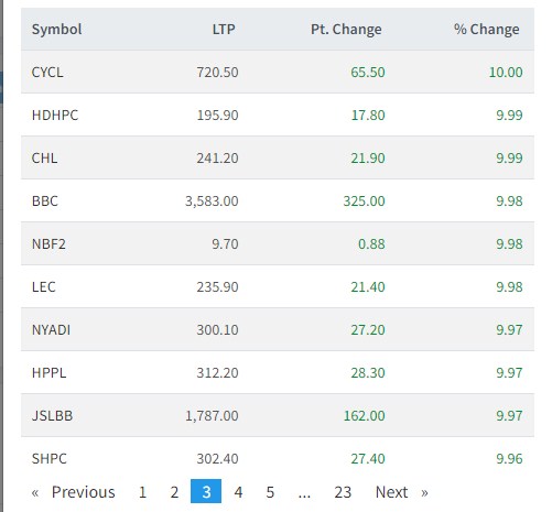 एकै दिन ४० भन्दा बढि कम्पनीको शेयर मूल्यमा सकारात्मक सर्किट, यी हुन सबैभन्दा धेरै कमाउने कम्पनीहरु