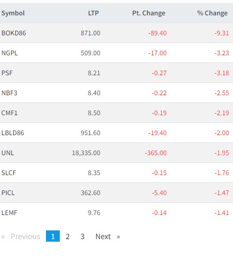 त्यस्तै, नाग्दी पावर, प्रभु सेलेक्ट फण्ड, नबिल ब्यालेन्स फण्ड, सिटिजन म्युचुअल फण्ड, लक्ष्मी बैंक डिभेञ्चर ८६, युनिलिभर , सानिमा लार्ज क्याप फण्ड, पु्रडेन्सियल, लक्ष्मी इक्विटी फण्डका लगानीकर्ताले सर्वाधिक गुमाएका छन् ।