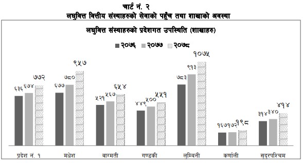 सो वर्षभित्र लुम्बिनी प्रदेशमा सबैभन्दा धेरै लघुवित्त वित्तीय संस्थाहरुको शाखा संचालनमा आएको देखिएको छ । त्यस्तै, कर्णाली प्रदेशमा सबैभन्दा कम लघुवित्तहरुको शाखा विस्तार भएको राष्ट्र बैंकले सार्वजनिक गरेको प्रतिवेदनमा देखिएको छ ।