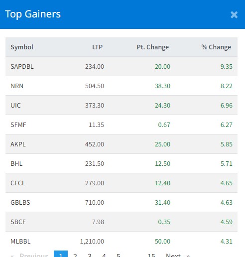 त्यस्तै, एनआरएन इन्फ्रास्ट्रक्चरको ८.२२ प्रतिशत, युनाइटेड इन्स्योरेन्सको ६.९६ प्रतिशत, सनराइज फर्स्ट म्युचुअल फण्डको ६.२७ प्रतिशत र अरुण काबेली पावरको ५.८५ प्रतिशत अंकले शेयरमूल्य बढ्न पुगेको छ ।