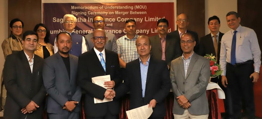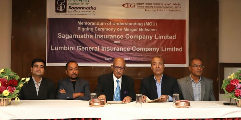 काठमाडौं । लुम्बिनी जनरल इन्स्योरेन्स कम्पनी र सगरमाथा इन्स्योरेन्स कम्पनीबीचमा आपसी मर्जरमा जाने सहमति पत्र (एमओयु) मा भर्खरै हस्ताक्षर सम्पन्न भएको छ ।