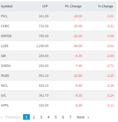 त्यस्तै, सिईबिडि हाईड्रोपावर, समिट लघुवित्त, लक्ष्मी लघुवित्त, नेपालएसबिआई बैंक, सिन्धु विकास बैंक, मानुषि लघुवित्त, नेपाल इन्स्योरेन्स, युनाईटेड इन्स्योरेन्स र हिमालयन पावर पार्टनरको शेयर मूल्य घटेको छ ।