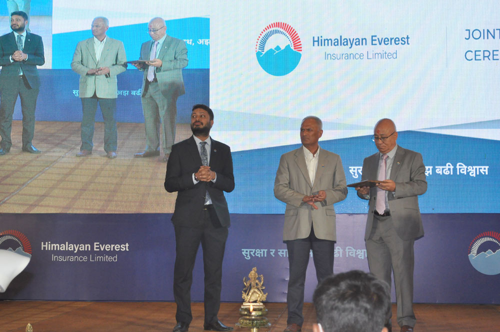 काठमाडौंको दरबारमार्गस्थित होटल याक एण्ड यतिमा एक औपचारिक कार्यक्रम आयोजना गर्दै हिमालयन एभरेष्ट इन्स्योरेन्सले नयाँ लोगो सार्वजनिक गर्दै एकीकृत कारोबार शुभारम्भ गरेका हुन् ।