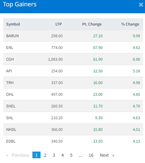 त्यस्तै, इमजिङ नेपाल, चन्द्रागिरी हिल्स, अपी पावर, तेह्रथुम पावर, सिंगटी हाईड्रोपावर, सोल्टि होटल, नेपाल हाईड्रो डेभलपर र एक्सेल डेभलपमेन्ट बैंकका लगानीकर्ताले सर्वाधिक कमाएका छन् ।