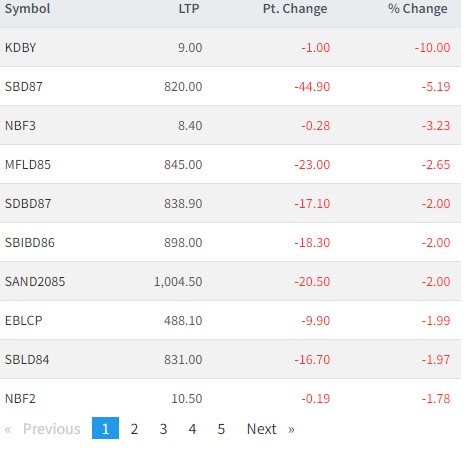 त्यस्तै, सानिमा डिभेञ्चर ८७, नबिल ब्यालेन्स फण्ड ३, मञ्जुश्री फाइनान्स ८५, साग्रीला डेभलपमेन्ट बैंकको डिभेञ्चर ८७, एसबिआई बैंकको डिभेञ्चर ८५, एभरेष्ट बैंकको प्रमोटर शेयर, एसबिएल डिभेञ्चर र नबिल ब्यालेन्स फण्ड २ को मूल्य घटेको छ ।