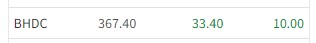 कम्पनीको शेयर ३३४ रुपैयाँमा खुलेको छ । कारोबारमा आएसँगै कम्पनीको शेयरमा सकारात्मक सर्किट लागेको छ । यो समाचार तयार पार्दासम्म विन्ध्यबासिनी हाइड्रोपवारको शेयरमा सर्किट लागेर अर्थात १० प्रतिशतले शेयरमूल्य बढेर ३६७ रुपैयाँ ४० रुपैयाँ पुगेको छ ।