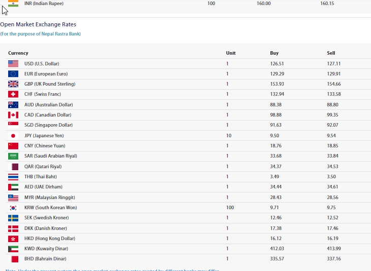 त्यस्तै, १ युुरोपियन युुरो डलरको नेपाली बजारमा १२९ रुपैयाँ २९ मा खरिद भईरहेको छ भने १२९ रुपैयाँ ९१ पैसामा मा विक्री भईरहेको छ । युके पाउन्डलाई १५३ रुपैयाँ ९३ पैसा मा खरिद र १५४ रुपैयाँ ६६ पैसामा बिक्रि भईरहेको छ ।