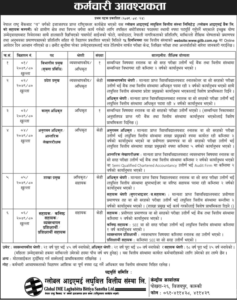 ग्लोबल आइएमई लघुवित्तले माग्यो ठुलो संख्यामा कर्मचारी, कति चाहिन्छ शैक्षिक योग्यता ?