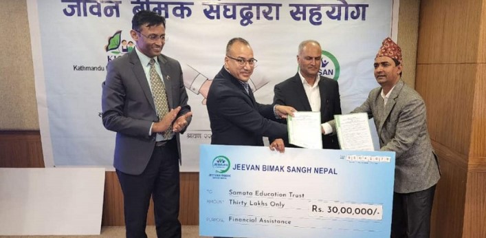 काठमाडौं । जीवन बीमक संघ नेपालले दुई संस्थालाई आर्थिक सहयोग गरेको छ । संघले सामाजिक उत्तरदायित्व अन्तर्गत काठमाडौं इन्स्चिच्युट अफ चाइल्ड हेल्थ र समता एडुकेसन ट्रस्टलाई सहयोग स्वरुप ७० लाख रुपैयाँ हस्तान्तरण गरेको हो ।
