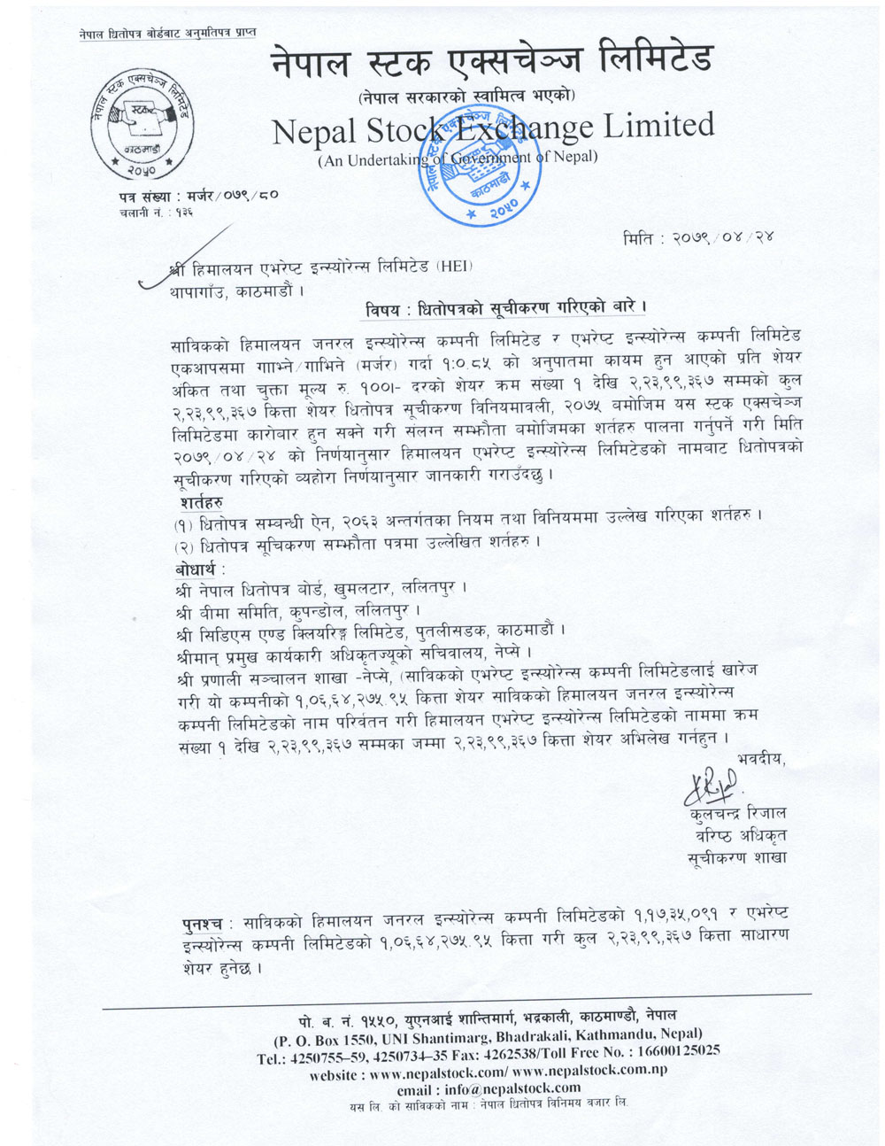नेप्सेमा हिमालयन एभरेष्ट इन्स्योरेन्सको शेयर सूचीकृत